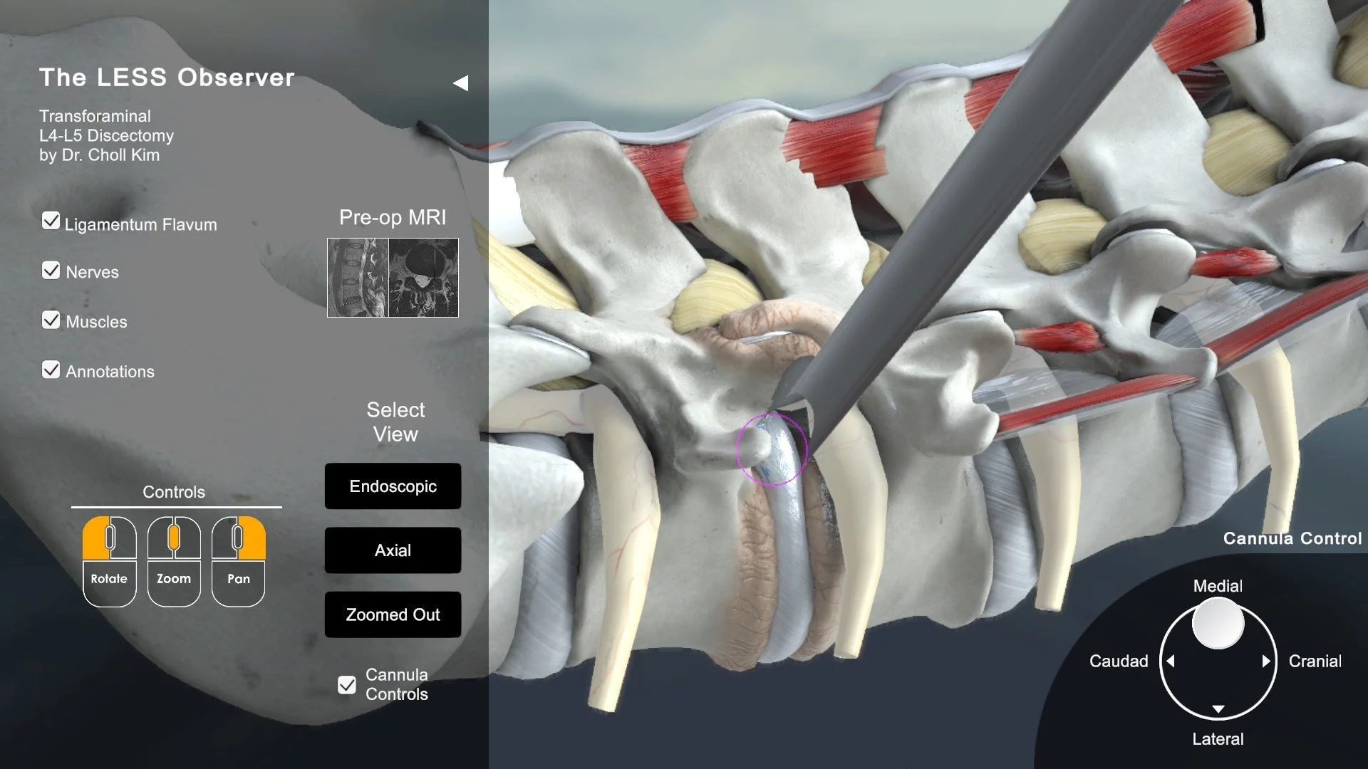 Designed and created for spine surgeon Dr. Choll Kim to explain where he is at a certain step of minimally invasive procedure. This is part of a bigger technique guide, coming soon.